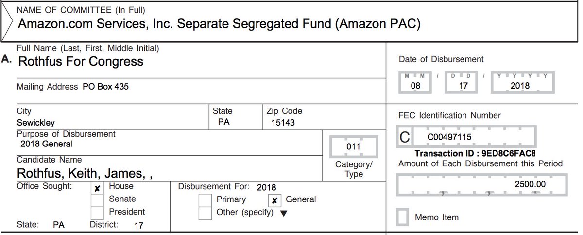 Amazon PAC's August FEC filing is in! Many tech companies give money to right-wing Republicans in safe seats, but Amazon is making more effective use of their political money by donating to Republican Pete Roskam, running in one of the most competitive House races in 2018.pic.twitter.com/oaKb48VEzm