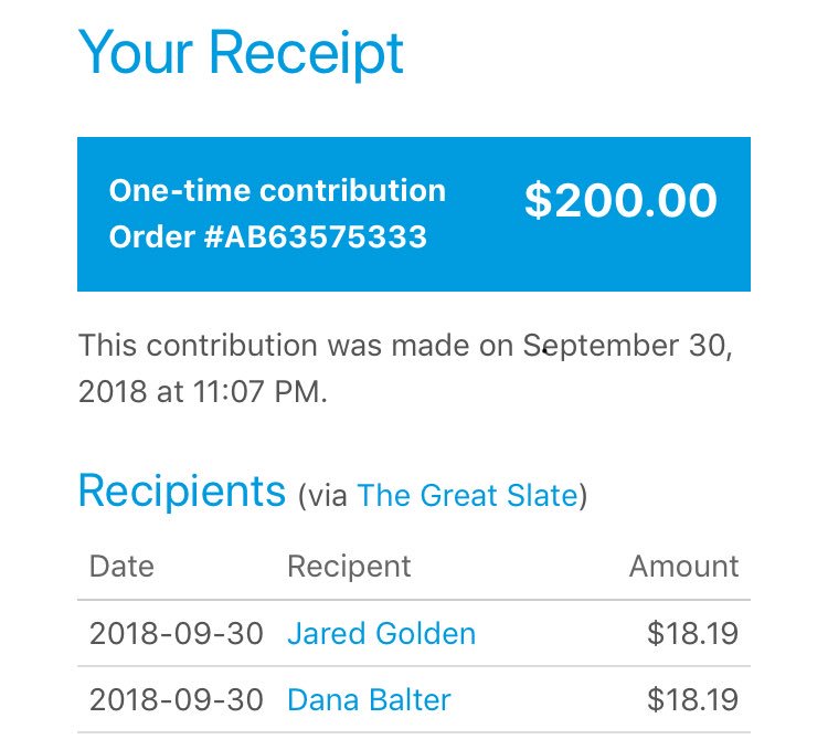 I did this the other night, but never sent it your way for matching. Thanks again for organizing this! First time Great Slate donor here, I'll be back for more.pic.twitter.com/AvfVfhvC38