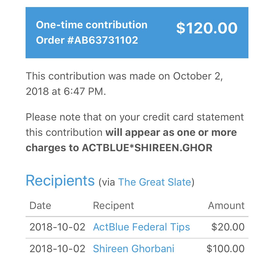 Let's book $5,000 for the newest Great Slater, @ShireenGhorbani, and then I'll announce the 13th Great Slater, a woman running in a district where all the polling tells us we can win, with almost zero national support. Rich people: pledge matching funds!https://secure.actblue.com/donate/great_slate …