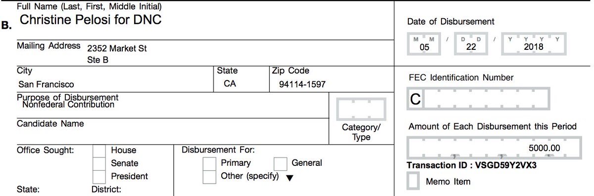 Here's Nancy Pelosi giving her daughter $5,000 out of campaign funds to run for Democratic National Committee
