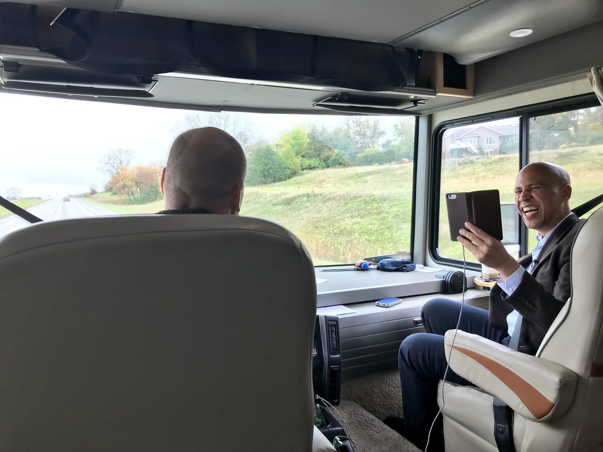Hello from Iowa. It’s the first day of early voting here. And here’s @CoryBooker driving through the state with congressional candidate @Scholten4Iowa pic.twitter.com/uwHaf0RniW