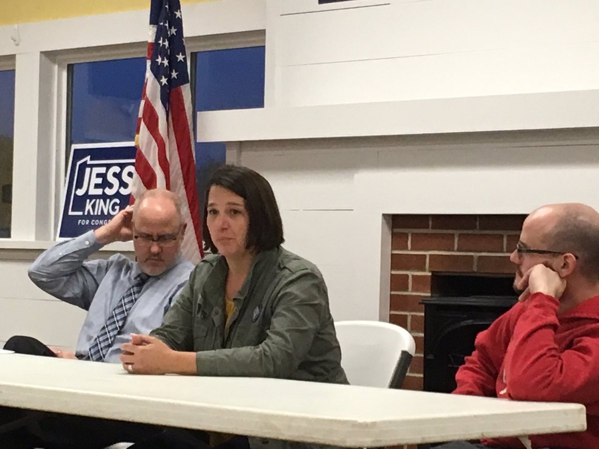Jess reminds audience that the average member of Congress is a millionaire, a statistic that J.D. also brings up at town halls. We’ve seen this year how hard it is for a non wealthy person to run
