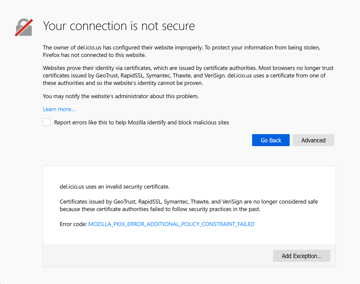 @Pinboard Firefox is not accepting the SSL cert for http://del.icio.us pic.twitter.com/xAeeHOuro3