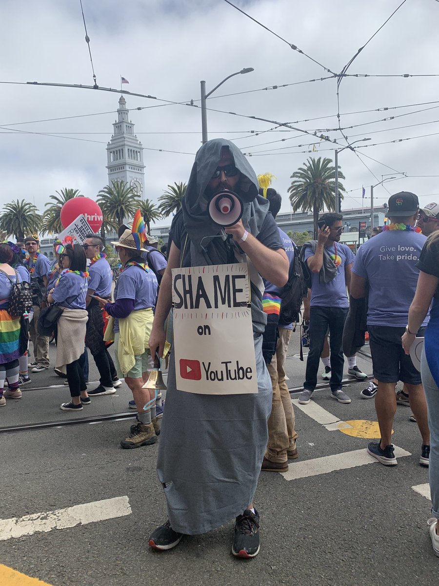 Google employees protesting YouTube's harassment policies at SF Pride Parade today. About 23 in the group. @NoPrideForGoog pic.twitter.com/M8mJW8nOWl