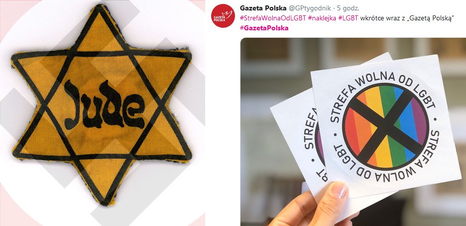 "Gazeta Polska" drukuje naklejki "Strefa wolna od LGBT". "Czy ktoś w redakcji słyszał o nazistach?" #judenfrei @gazetapl_news http://wiadomosci.gazeta.pl/wiadomosci/7,114883,25004389,gazeta-polska-drukuje-naklejki-strefa-wolna-od-lgbt-doczekalismy.html …pic.twitter.com/hae39iZxS9