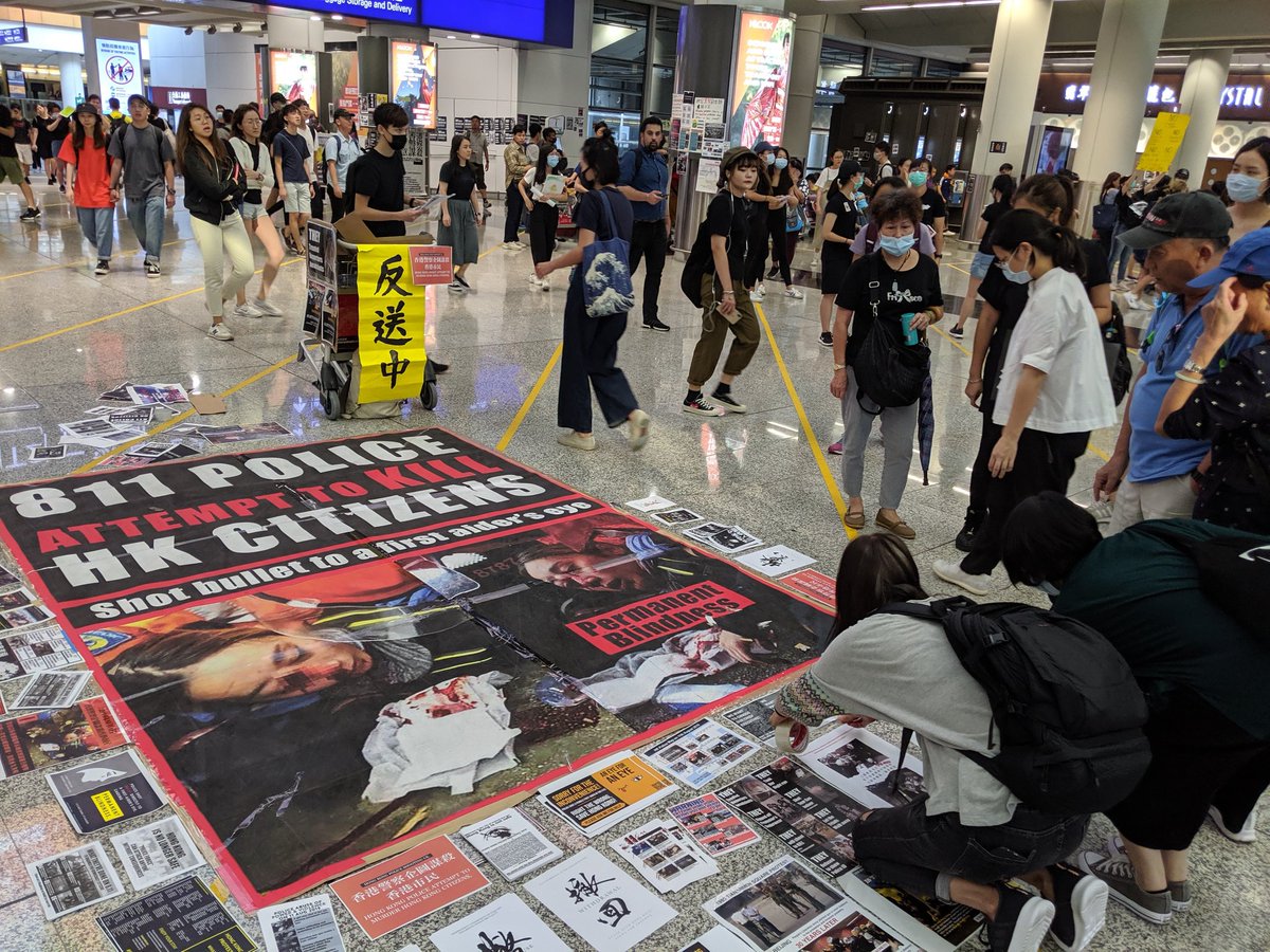 Hong Kong airport full of lively chanting protesters, but functioning. My belief is that this will become a permanent sit-in for as long as the crisis lastspic.twitter.com/sMqDncog59