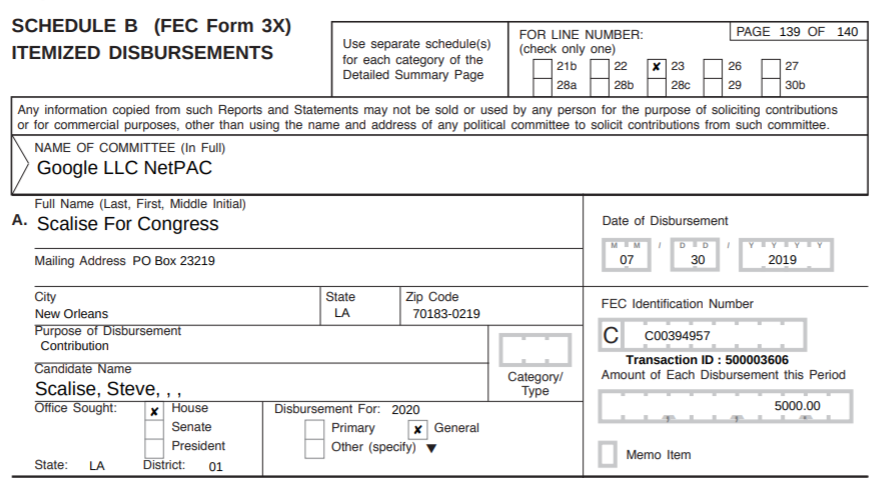 Google's August FEC filing is in. Google gave $5000 to Steve Scalise, self-described "David Duke without the baggage", a fervently anti-LGBT legislator who one spoke at a white supremacist conference, claiming it was an accident. Maybe this donation was an accident, too. Oops!pic.twitter.com/SQY874uDW8