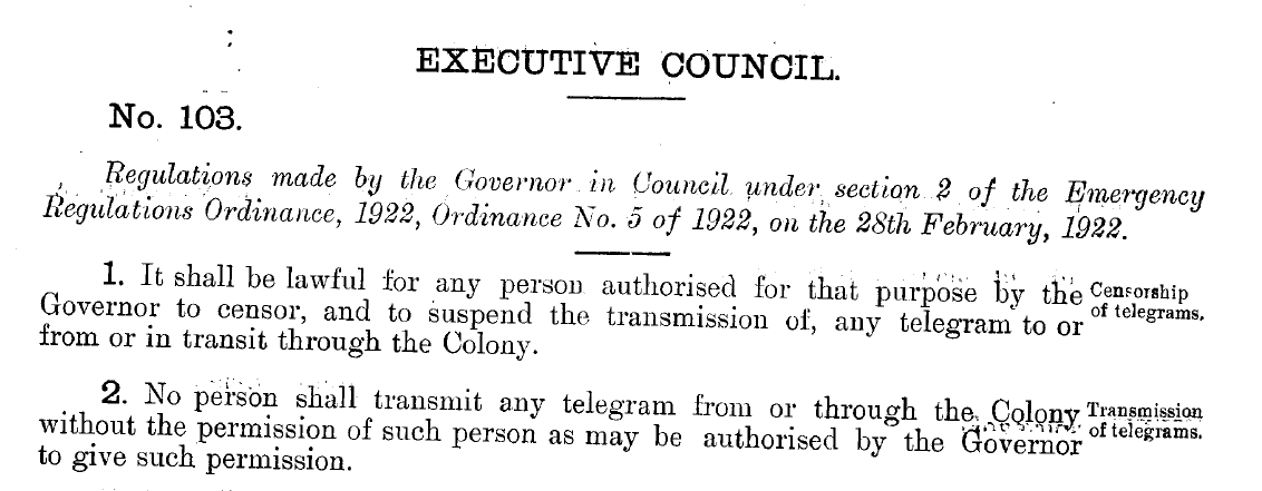 Almost a century ago, the Hong Kong government used emergency powers to ban unapproved telegram communications.https://twitter.com/webbhk/status/1166534668293832704 …