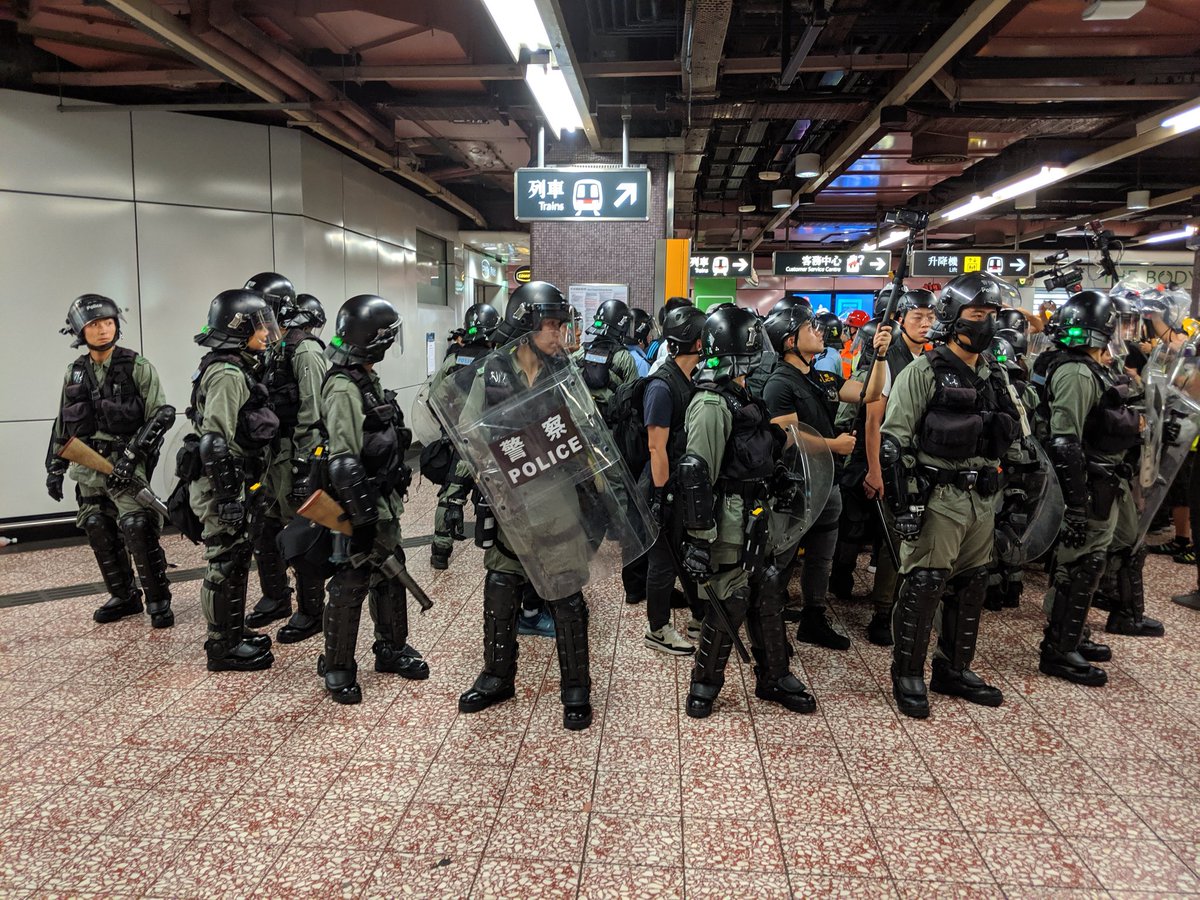 Surreal situation unfolding in Prince Arthur MTR station, where riot cops have been letting terrified passengers through a cordon while they wait to evacuate the injuredpic.twitter.com/4e1xcLVddD