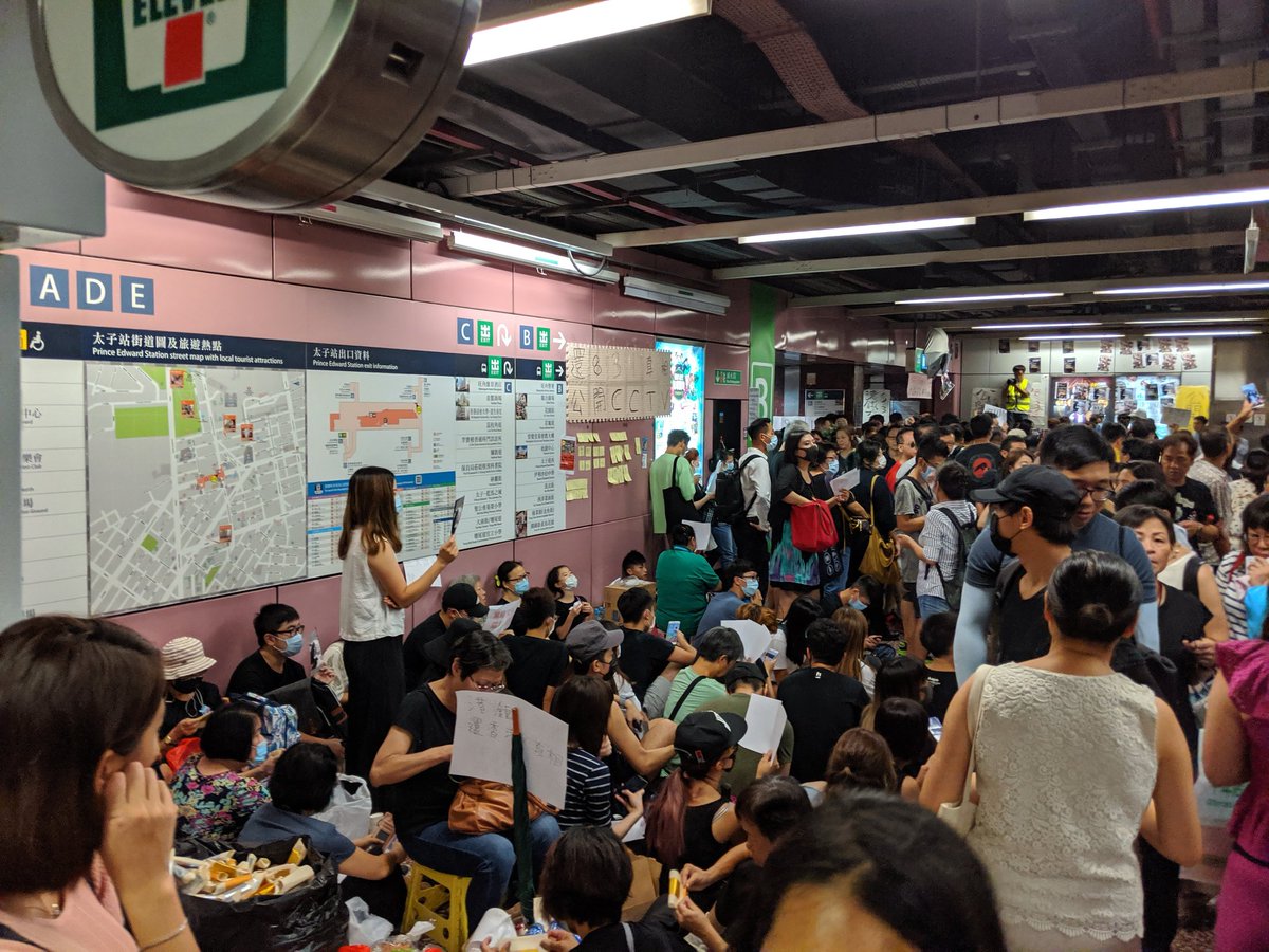 Impromptu sit-in at Prince Edward station, scene of vicious police attacks on 8/31, and further police violence on 9/3. There's a major police station basically upstairs from this protestpic.twitter.com/oxfBXrWJwb