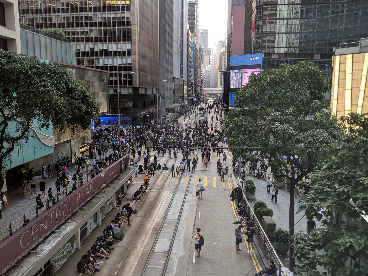 Frontliners are gearing up at Central after police shut down the site (Hong Kong's main travel hub) well before the scheduled end of a legal, enormous protest downtownpic.twitter.com/YAAiRv9ypz