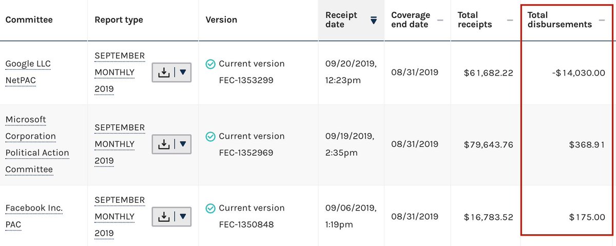 First month I can recall when none of Microsoft, Google, or Facebook made any political donations. (Salesforce, Twitter and Amazon are on a biannual reporting schedule, so it's hard to tell what they're up to.) This is a very encouraging sign that tech PACs are being wound downpic.twitter.com/gGS5BZlkcO