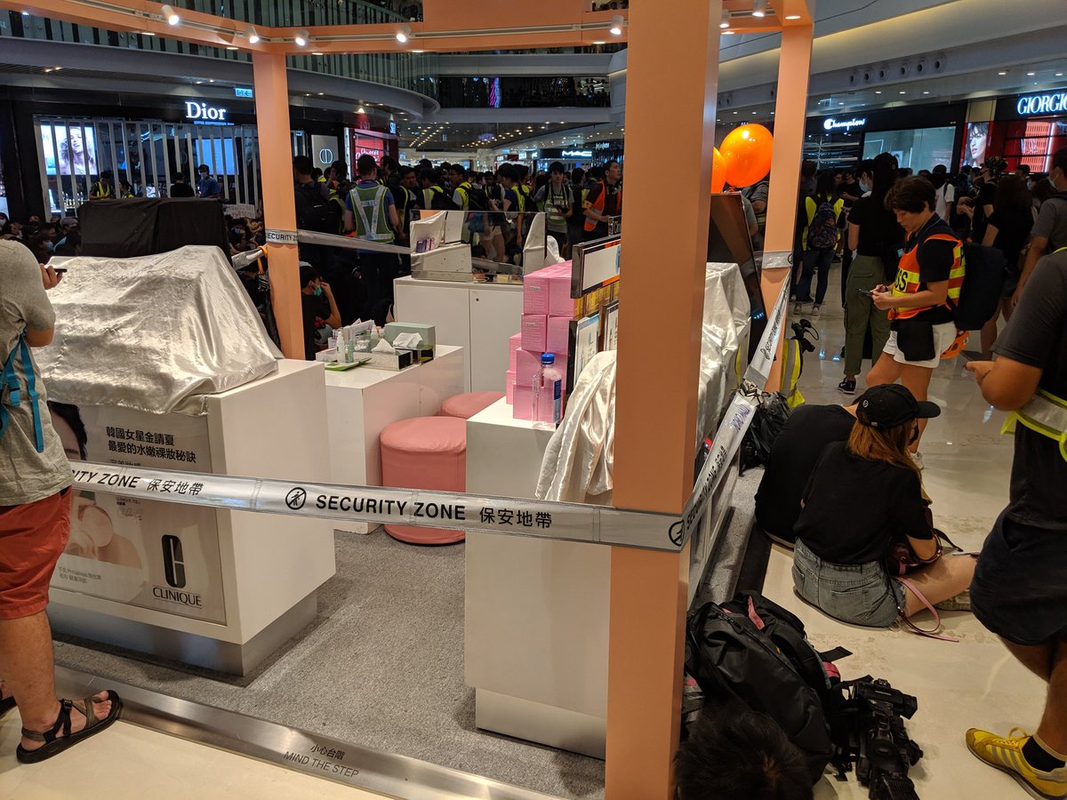 Just imagine antifa or your favorite black bloc back home doing this. The mall is absolutely packed, with nowhere to sit except the floor, but no one crosses even the flimsiest boundarypic.twitter.com/Jv3dMy4AXy
