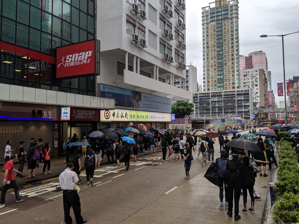 Not a great weekend for the Bank of China. That's a branch getting re-demolished on the left; blue and white building in background on the right is a major police station. I don't think the mask ban is workingpic.twitter.com/ftCLdKlJZ5