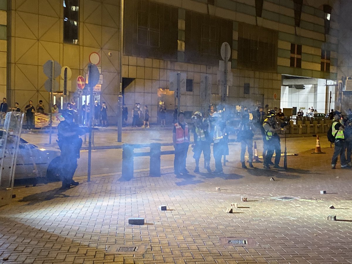 Blue flag brandished in TKO. People throwing bricks towards police. Several tens of meters between two groups. Police declaring unlawful assembly.pic.twitter.com/rcDQWDJSa2
