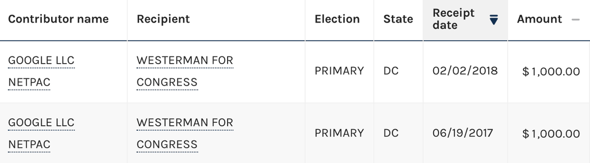 Bruce Womack believes that climate change is part of a natural cycle, and has nothing to do with human activity. The 2018 FEC donation page, which shows Google's $2000 contribution sandwiched between the Koch brothers and Exxon Mobil, tells you all you need to know.pic.twitter.com/oqes8cDXYL