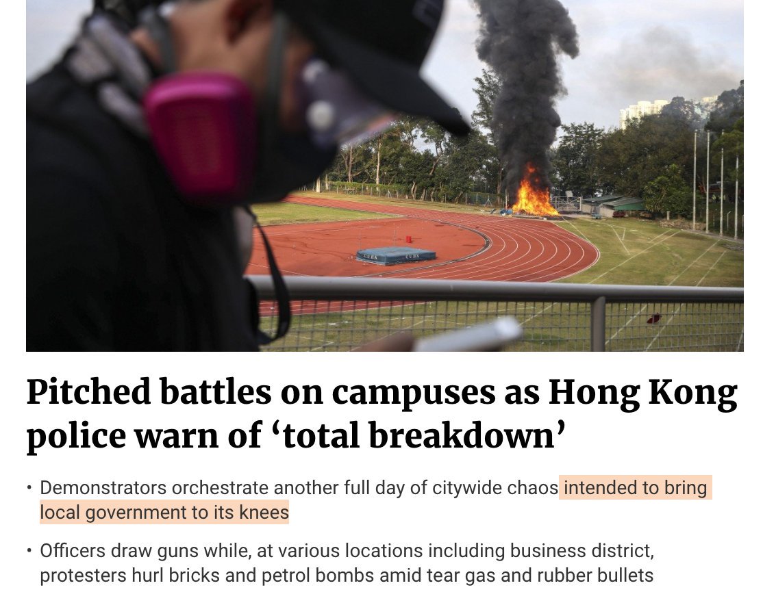 The South China Morning Post is an odd beast where there are pockets of excellent, independent journalism, but the editorial staff follows a strict pro-government line. This reference to bringing "local government to its knees" on the front page may be significant.pic.twitter.com/KZT2VsO3F3