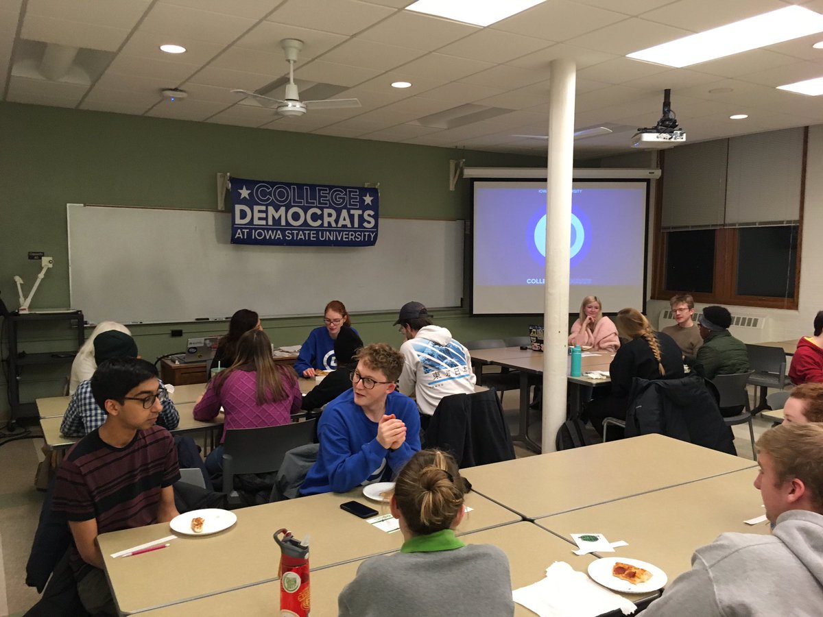 At the college democrats event at ISU in Ames, where J.D. will be guest speaker. These crafty young politicos already know the secret of organizing: bring food!pic.twitter.com/OkSAgxRgCC
