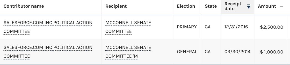 Heh, nope. Salesforce donates to the worst people; I'm sure they'll get McConnell in the next couple of months.pic.twitter.com/eWWPe9LMjl