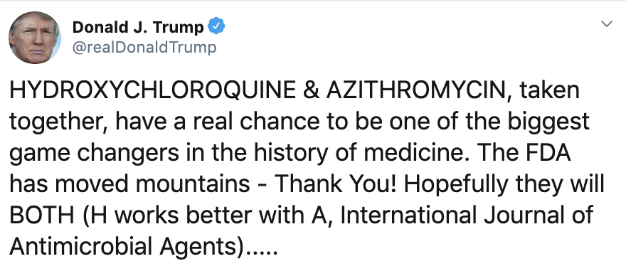 Hey @TwitterSecurity, how is this not a violation of your new policies against coronavirus hucksterism and armchair medicine? The BEST CASE outcome here is that there is panic-buying of this antimalarial resulting in shortages for patients.pic.twitter.com/EwdmuuG3cS