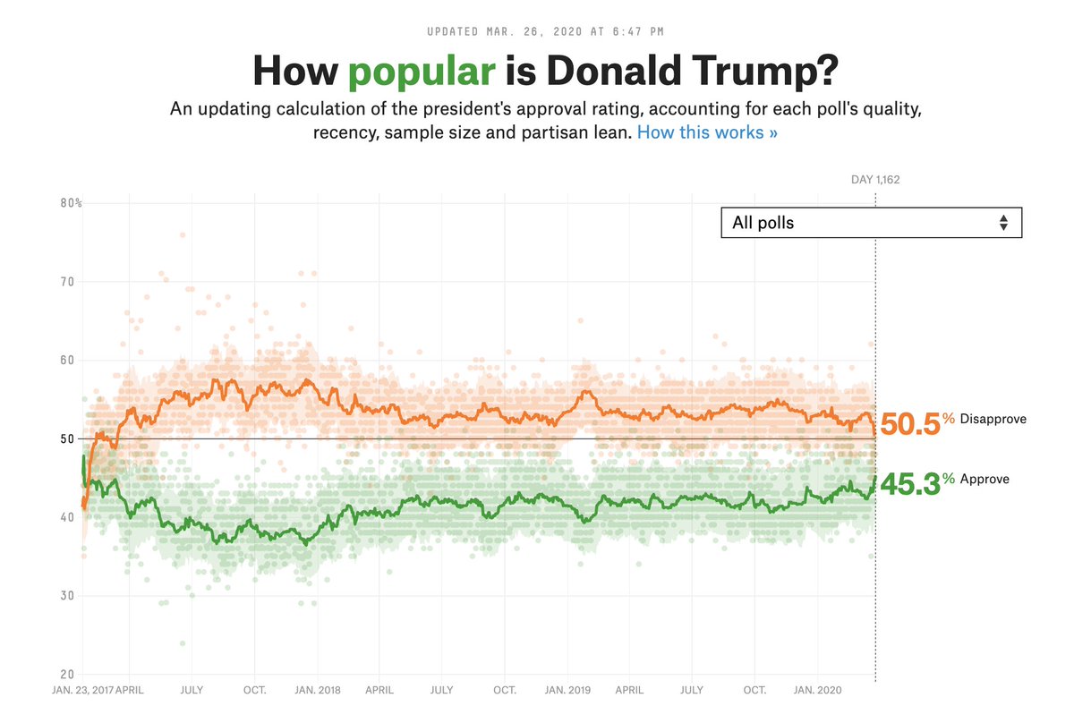Trump is now at the highest approval rating since the first week of his presidency. At some point we could think about forming a counterbalancing political grouping to publicly challenge the President's lies and mishandling of the crisis, maybe even offer solutions of their own.pic.twitter.com/veQlmRv8yv