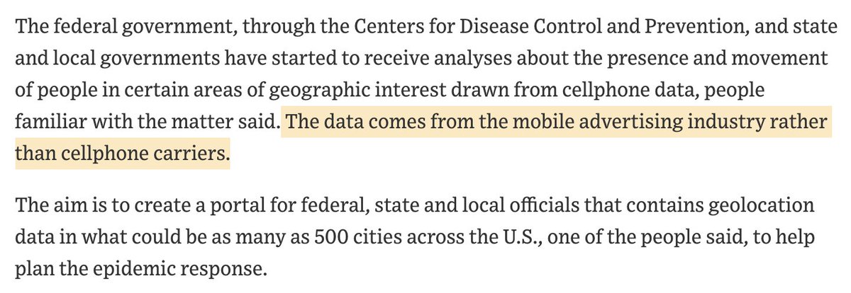 This is fantastic news, no joke. The government is using cell data (from mobile advertising!!) to fight the epidemic. Exactly what we need right now. https://www.wsj.com/articles/government-tracking-how-people-move-around-in-coronavirus-pandemic-11585393202 …pic.twitter.com/tLCY1vo9S6