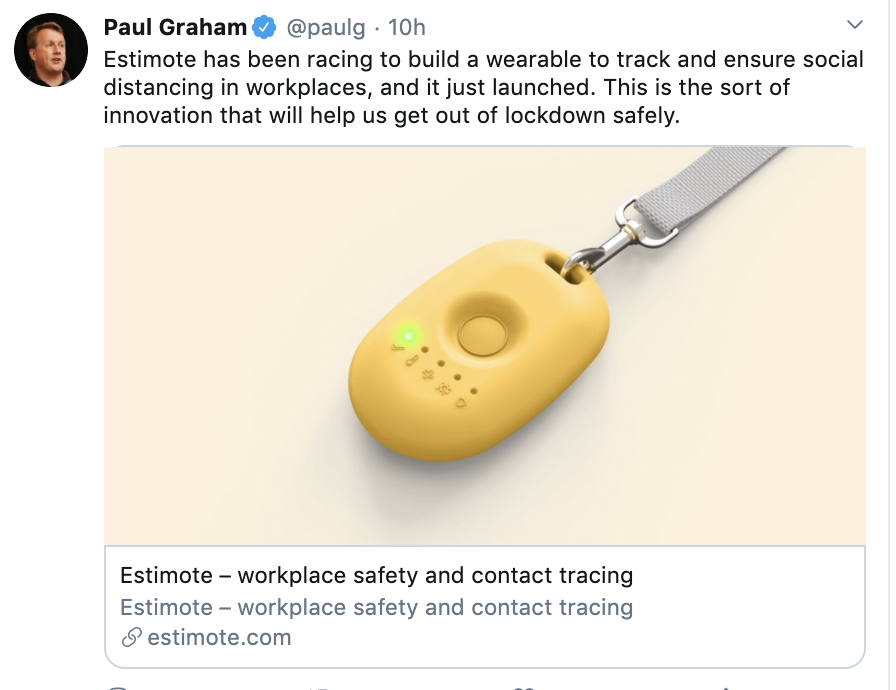 Another fine YC product. Welcome to your new workplace hell. It's the LifeAlert bracelet that snitches to your boss when you try to engage in protected, concerted action at your workplace.pic.twitter.com/1FKFo6PQtC