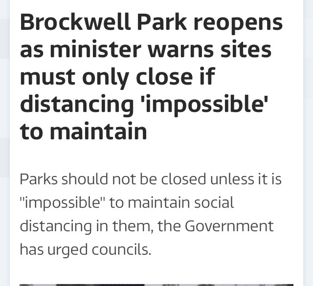 They're taping off park benches in that park.https://www.southwarknews.co.uk/news/brockwell-park-benches-taped-off-as-concerns-are-raised-over-police-powers-during-lockdown/ …