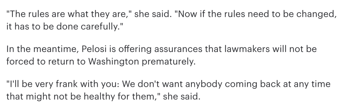 It's absolutely criminal that both Pelosi and McConnell didn't get remote voting put in place before Congress recessed. Both have absolute failed their leadership tests because of the lack of remote voting.