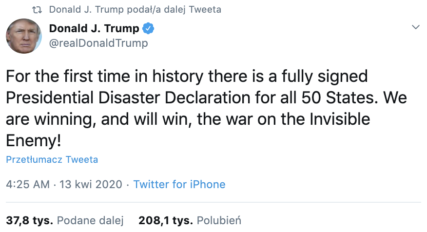Probably the most perfect Presidential Disaster Declaration of all time. It's a win win oops you're dead situation.