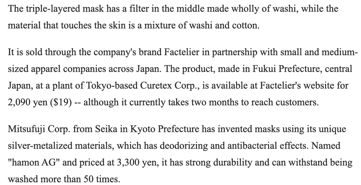 Japan being Japan, there is now an arms race for who can produce the most top-of-the-line luxury mask https://mainichi.jp/english/articles/20200413/p2g/00m/0fe/081000c …pic.twitter.com/4btaovgEQn