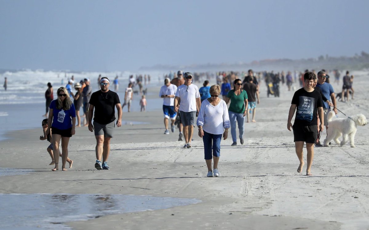 Another example of journalists using a telephoto lens to make a beach (in Jacksonville) where everyone is observing good social distancing look crowded.pic.twitter.com/87IJbRPKgP
