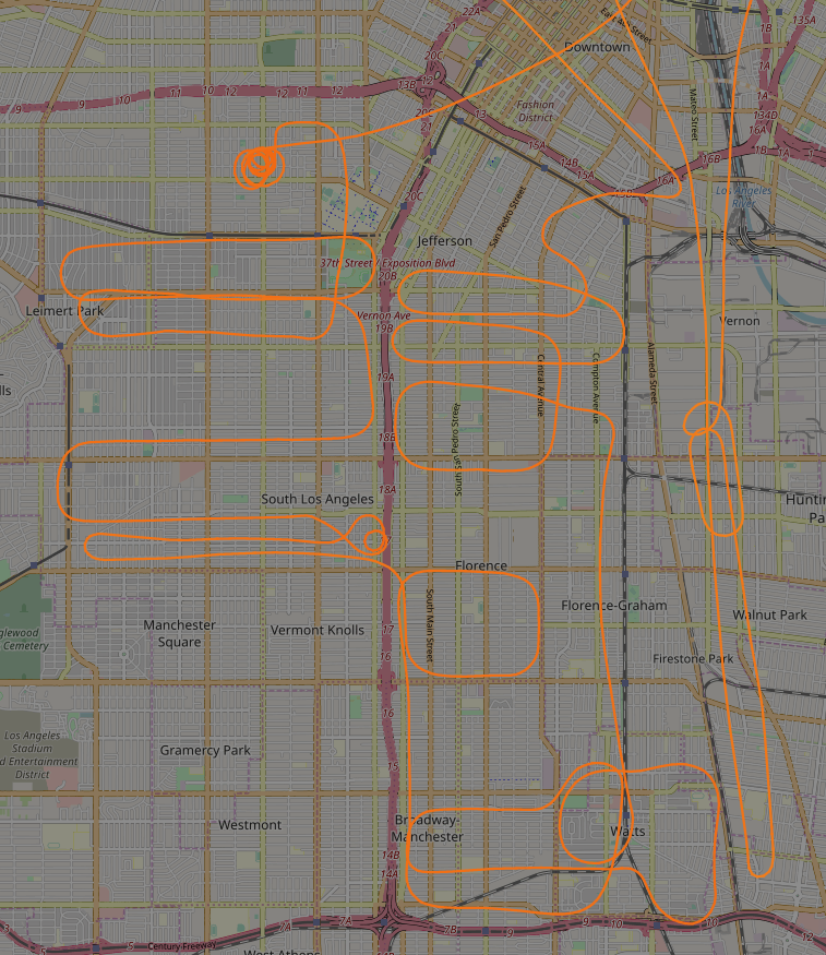 Don't often see police helicopters doing rectilinear, almost lawnmower patterns. https://twitter.com/SkyCirclesLA/status/1251752561394081792 …pic.twitter.com/qmccXX6QjB
