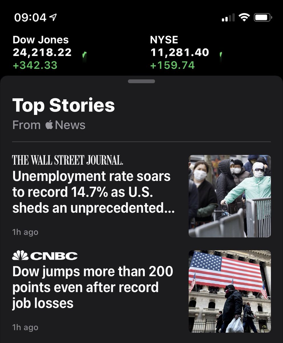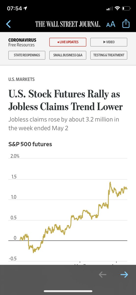 My uninformed take is that the market loves this because it’s pricing in how much lower pay and benefits will be offered when rehiring all these workers when things “reopen.”