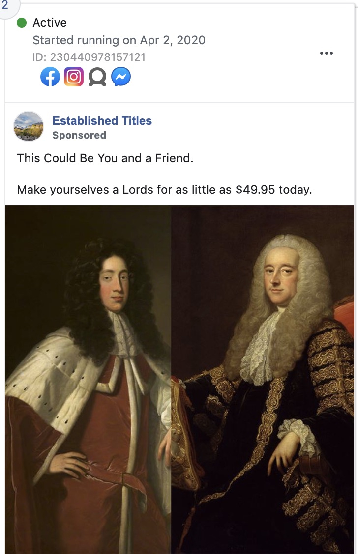 It’s like Facebook knows I’m about to ask about mineral rights for my square foot of land in Dumfries and Galloway and will never show me this ad again.