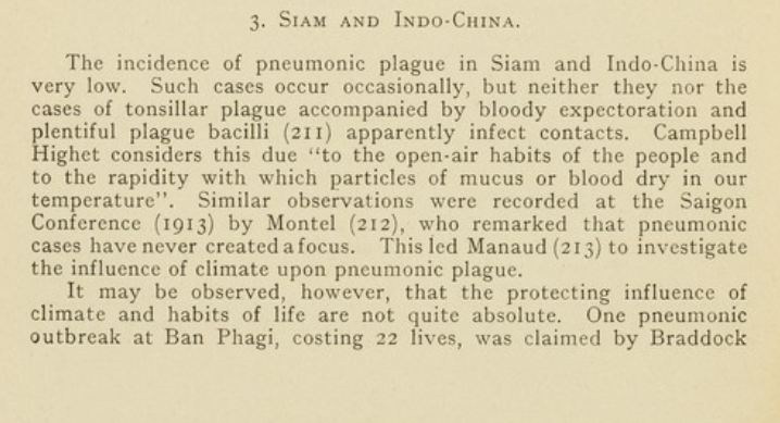 From "A treatise on pneumonic plague" by Wu Lien-Teh, who invented the modern medical mask based on his experience during the 1910 pneumonic plague in Manchuria: he observes climate differences in infection severity from nearly every country he studied. pic.twitter.com/Uic5ao8HUk