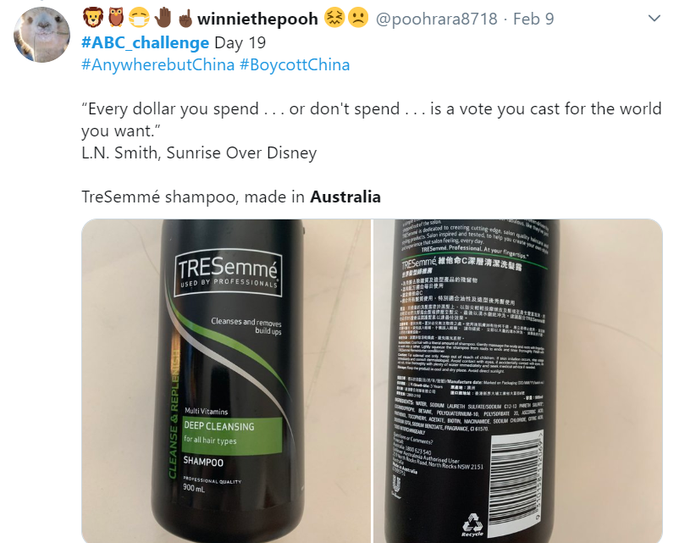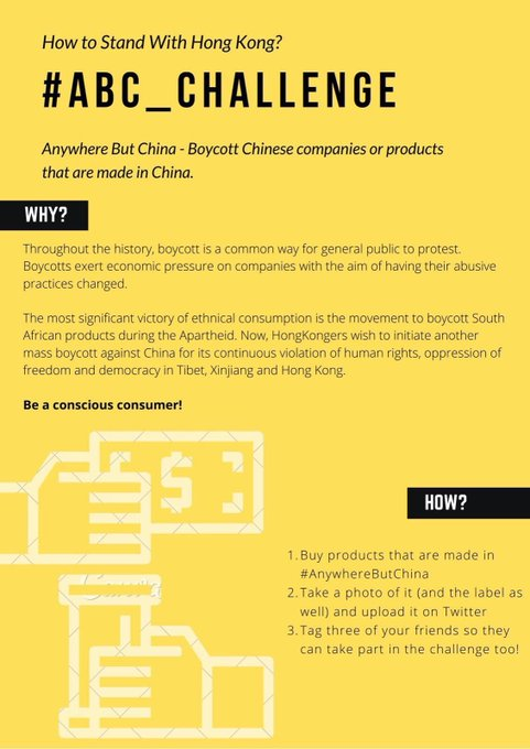 #ABC_challenge campaign to boycott products made in China. As a HKer living in Australia, I would like to see more proudly Australian made when I do shopping#BuyAussiehttps://twitter.com/theoldgumtree/status/1265615502996410368?s=19 …