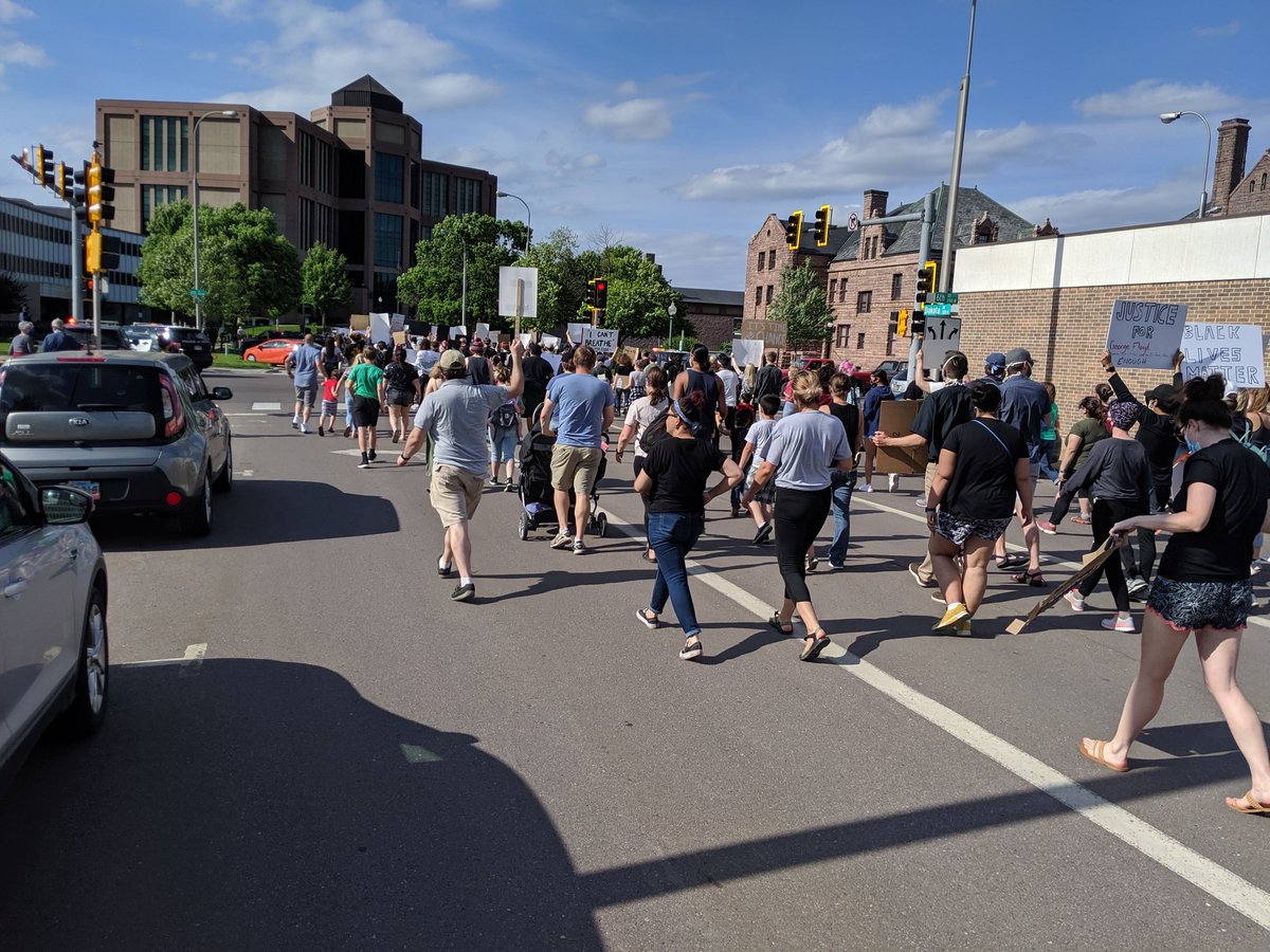 Chants of "What's his name? George Floyd" and "I can't breathe" are breaking out as we move to the streets.pic.twitter.com/rzH90krkp8