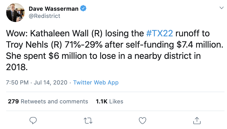 That's $480 per vote! I'm glad we have such strong norms against purchasing elections directly.