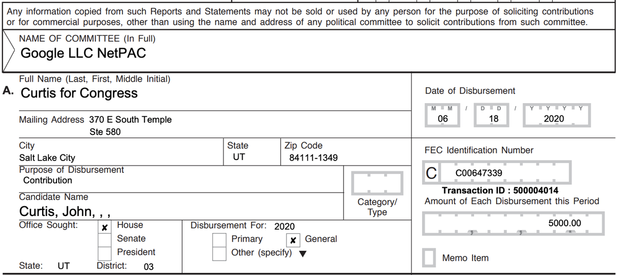Google gave $5,000 on June 18 to Utah congressman and former Provo mayor John Curtis, who shielded his rapist police chief while in office (https://en.wikipedia.org/wiki/John_Curtis_(Utah_politician) …)pic.twitter.com/7mIz2raN5E