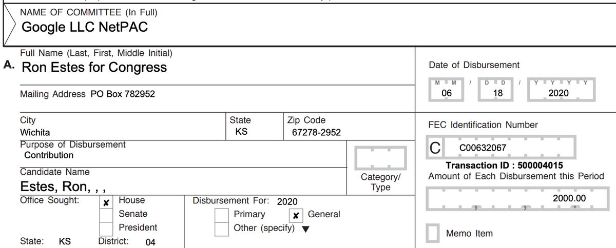 Still on June 18, Google gave $2,000 to Ron Estes, an anti-abortion hardliner who advocates defunding Planned Parenthood and asserted in a public debate on the topic that Planned Parenthood had been profiting by selling parts of aborted fetuses.pic.twitter.com/BAl61HYgxq