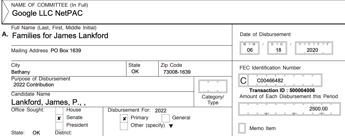 There must be some nuance I'm missing, like why Google on June 25 gave $2,500 to one of the most virulently anti-gay voices in the Senate, James Lankford. The Oklahoma senator just days ago filibustered the Equality Act and opposes all legal protections for gay Americans.pic.twitter.com/gFUbdVs4mO