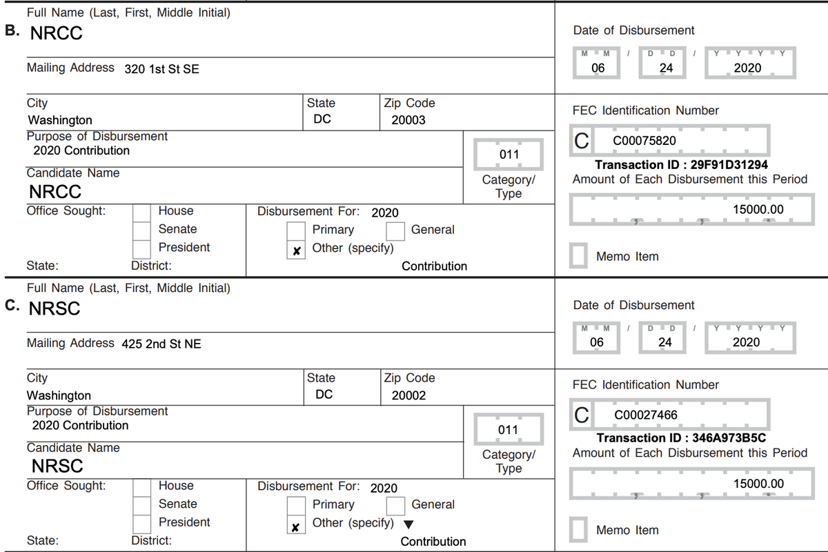 Facebook was at least able to get the National Republican Congressional Committee and National Republican Senatorial Committee to cash their check. Facebook made the maximum legal donation on June 24.pic.twitter.com/s7VxLX1yfJ
