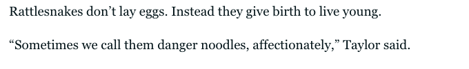 I was today years old when I learned that baby rattlesnakes are sometimes called "danger noodles"