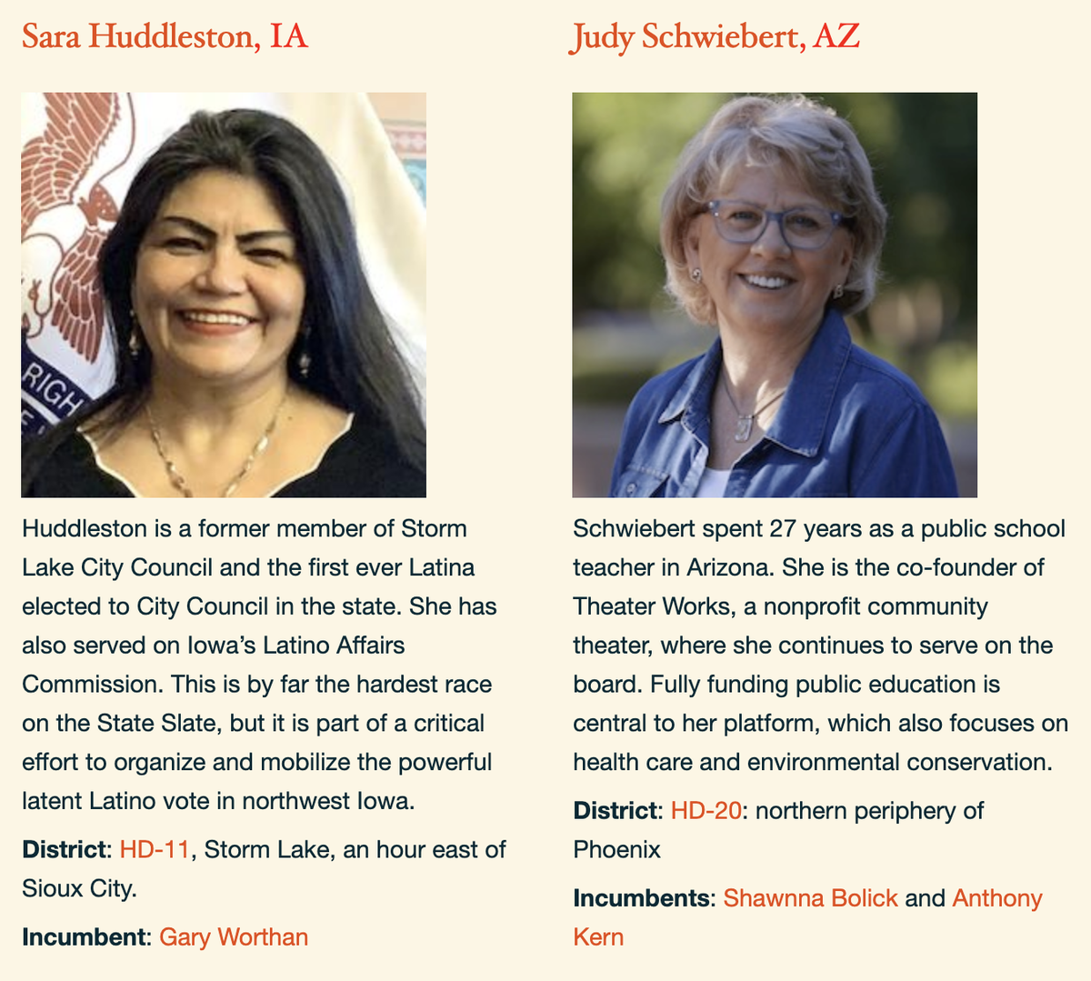 One of our candidates on the State Slate, Sara Huddleston, increased Democratic voter registrations by 10% in her state house district last time she ran, because of effective outreach to the large Latino community in northwest Iowa. On her own this pandemic year she's raised $14K