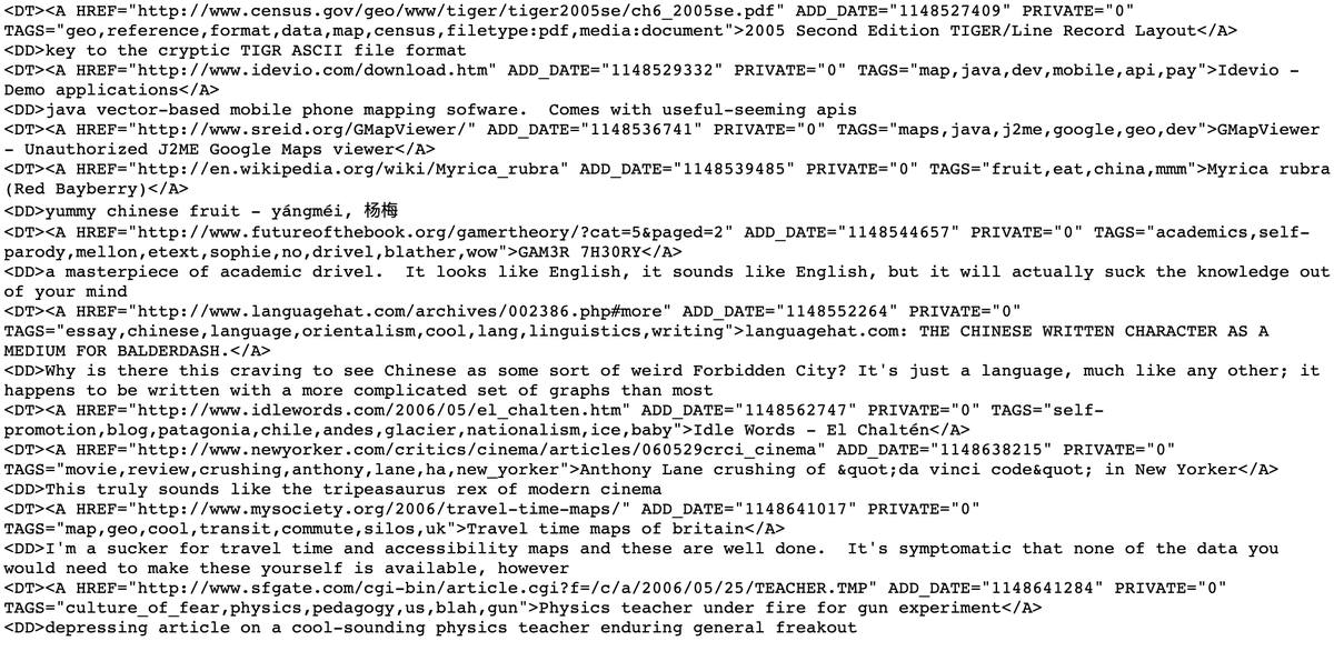 Sort of got Delicious export working now. My bookmarks were way more interesting before Twitter. One step closer to the triumphal return of this beloved trove of links, on 1/100 the hardware footprint of what I bought in 2017.pic.twitter.com/b7EyKV5AEU