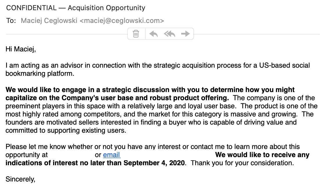 The SCIENCE INC bros contacted me when they wanted to sell, but we couldn't agree on terms. I had a friendly chat with the guy they sold to, and once he was ready to pull the ripcord he called me again.