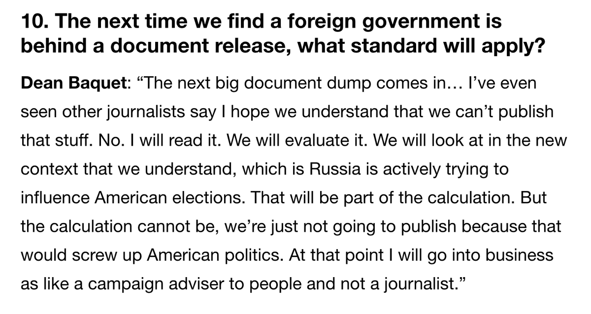 We have the managing editor of the New York Times issuing an open invitation for foreign governments to conduct another Wikileaks-style disinformation campaign again, promising that it will get published, but sure, Twitter trending topics are destroying democracy!pic.twitter.com/8B6sJ3jAdS