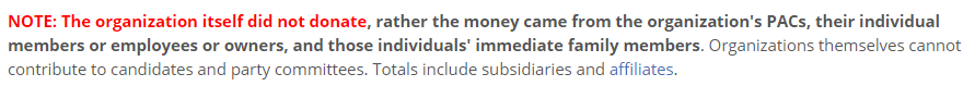 Yes, they are, and I noted that -- and they are strictly regulated unlike in the public imagination. There are just a lot more employee donations than PAC ones. And taken together 80% go to Ds. Take a look here at the biggest donations enumerated by OpenSecrets. $0 from PACs.pic.twitter.com/iDQV1tVU1t