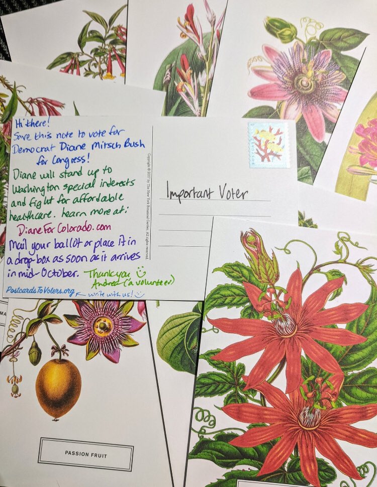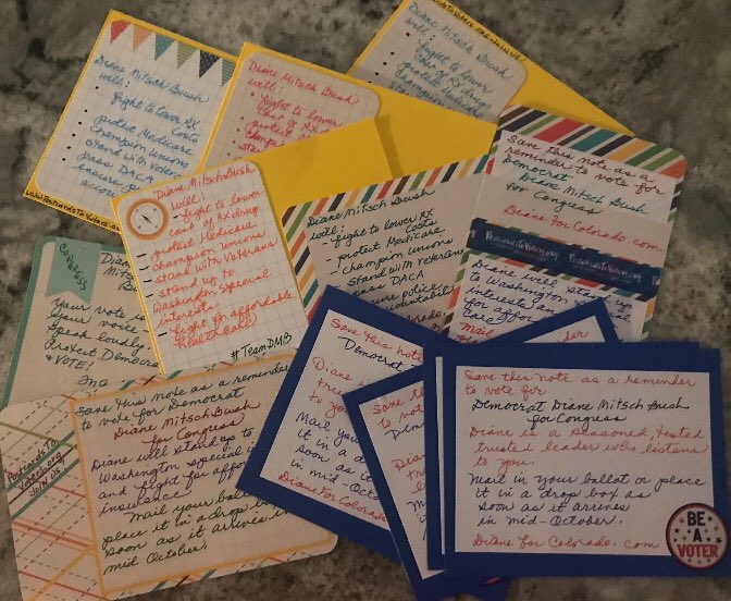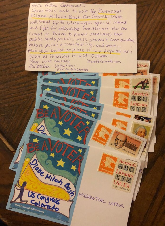 I know, right?!! Fellow Colorado here. ❤️ I’m so excited because writing #PostcardsToVoters for @RepDM will also increase voter turnout for John @Hickenlooper. It’s a two for one deal! Write with us: Text JOIN to (484) 275-2229pic.twitter.com/lvG37pWd1s